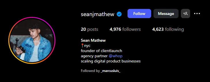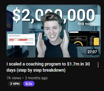 Online agency for coaches. Worked with ecomsidehustle. His current agency doing upwards of +$250K per month, with only 2-3 people on his team. Part of Jeremy Haynes community