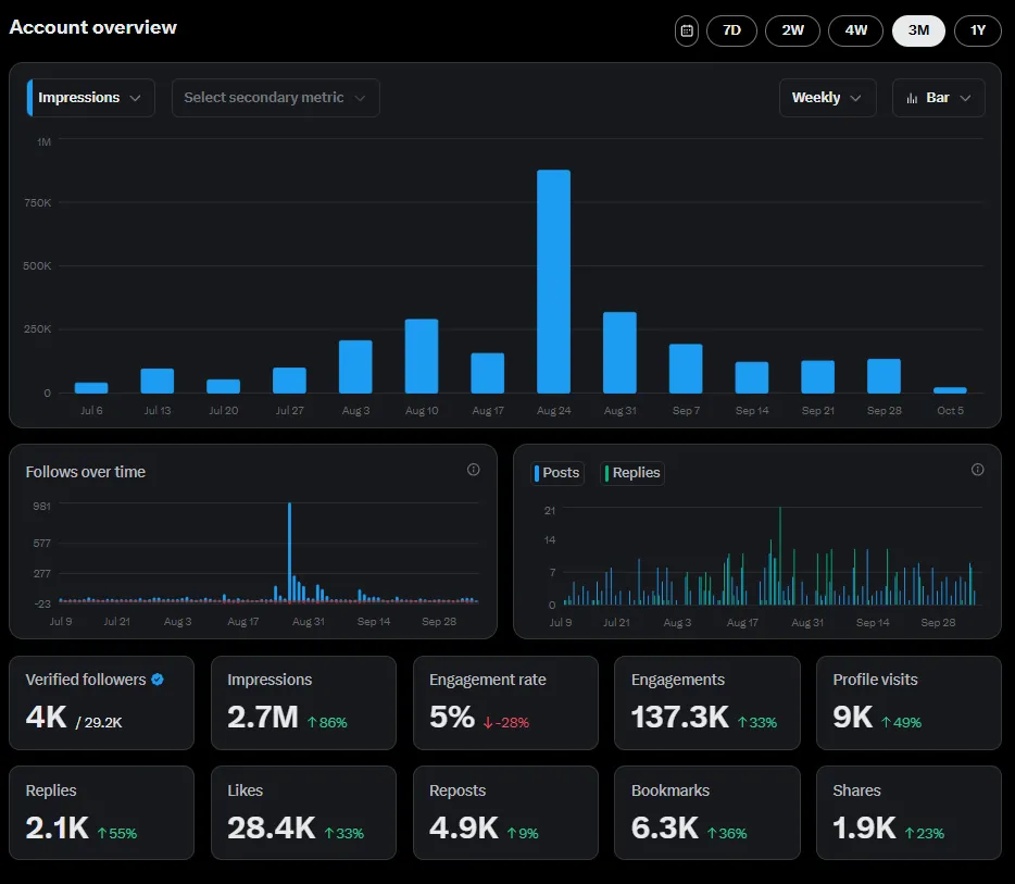 Helped client reach 50K impressions on X to 850K impressions